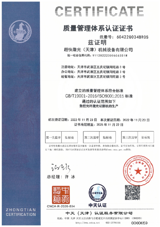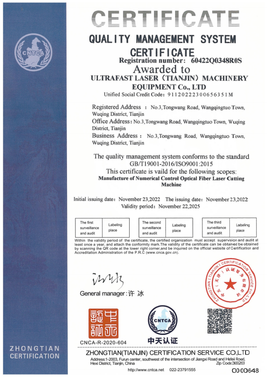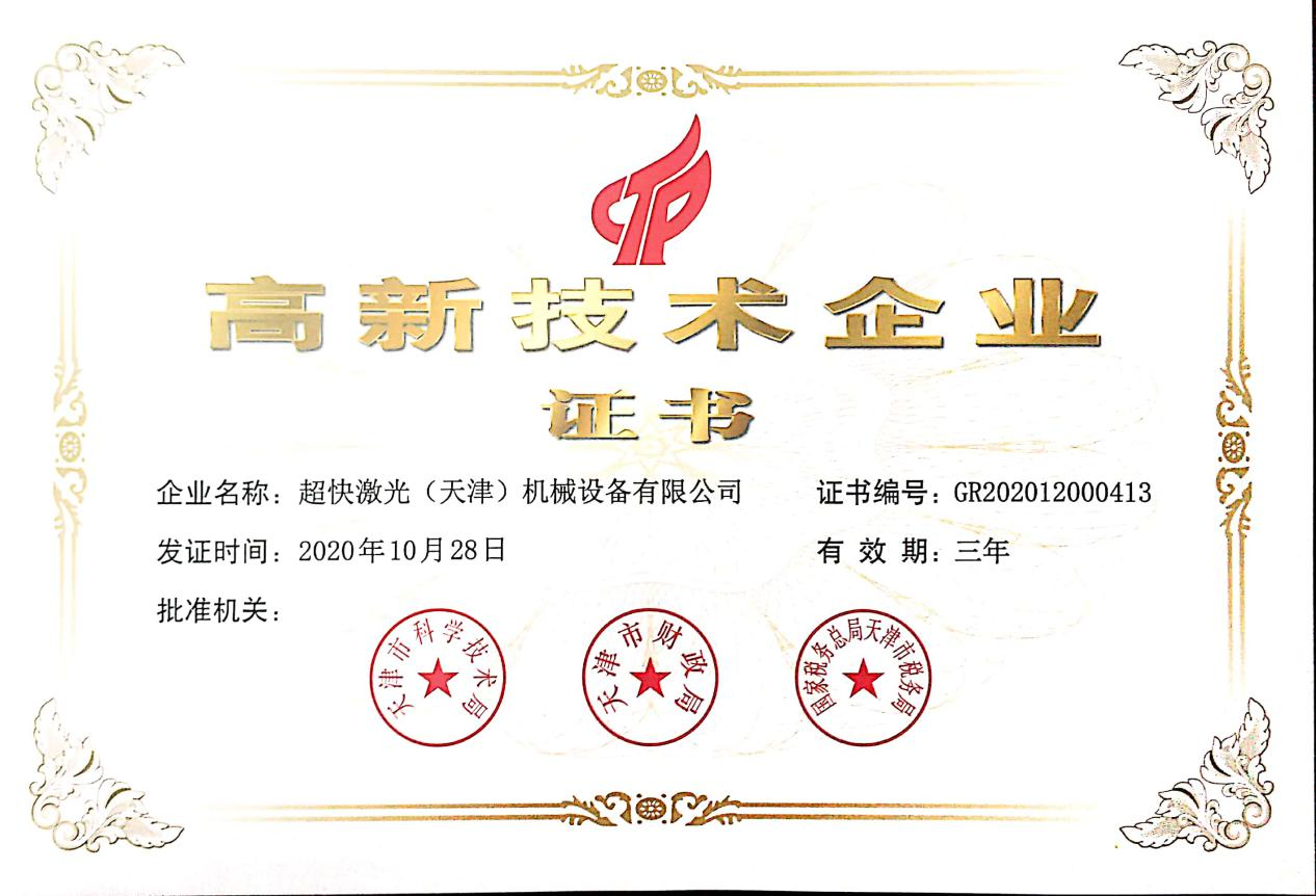 超快激光擁有一支專業(yè)從事激光切割設(shè)備研發(fā)設(shè)計(jì)的強(qiáng)大技術(shù)團(tuán)隊(duì),獲得多項(xiàng)實(shí)用型設(shè)計(jì)專利,已通過ISO9001質(zhì)量管理體系認(rèn)證證書,并且獲得國(guó)家頒發(fā)的高新技術(shù)企業(yè)證書。